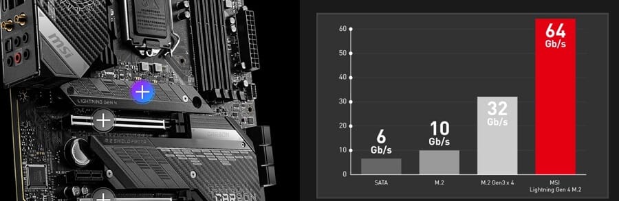 Lightning Gen4: Anakartta 64 GB/sn’ye ulaşan bant genişliği teknolojisi yer almakta. Seri üzerinde 2 adet PCI-E 4.0 X16 bulunuyor.