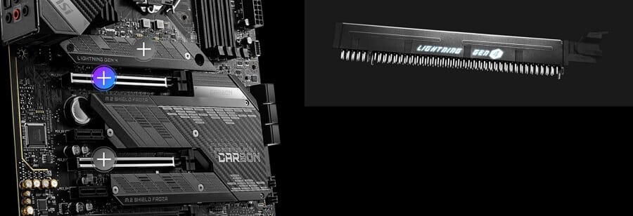 Çelik zırh tasarımlı bu slotların PCI-E 4.0 versiyonundan yararlanmak için 11.nesil Intel işlemcilere ihtiyacınız var. Fakat geriye uyumluluk sistemi de çalışıyor. Yani daha eski işlemcilerde de slotlar kullanılıyor.
