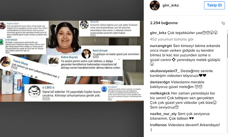 Henüz daha 11 yaşında olan ve kendi imkanları ile açtığı YouTube kanalına kendi çektiği videoları koymaya başlayan Gülnur kardeşimiz, aradan kısa bir süre geçtikten sonra kendini bilmez, haysiyet yoksunu, kendisini "dünyanın en yakışıklısı veya en güzeli" olarak gördüğü, haddiniz bilmez üç beş ucube tarafından bu kardeşimizin kanalındaki videolara yorumlar gelmeye başladı. Aşağıdaki resimde de görmüş olacağınız üzere yapılan yorumları Gülnur kardeşimiz gördüğünde morali çok bozuldu hatta ağlayarak kendi kanalındaki tüm videoları sildi.