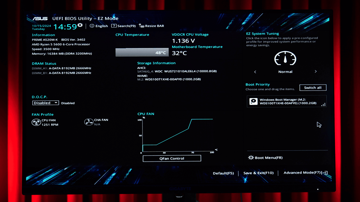 AI Overclock Tuner bölümünden D.O.C.P açıp 2666MHz olan RAM hızımı 3200MHz çekiyorum. Bu sayede ramlerin tam performansını almaya başlayabiliriz.