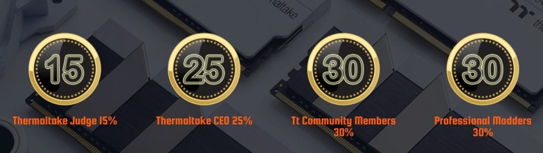 %15’i etkinlik planlama ekibi dışında Thermaltake HQ’daki herkesin vereceği oylardan oluşacak.