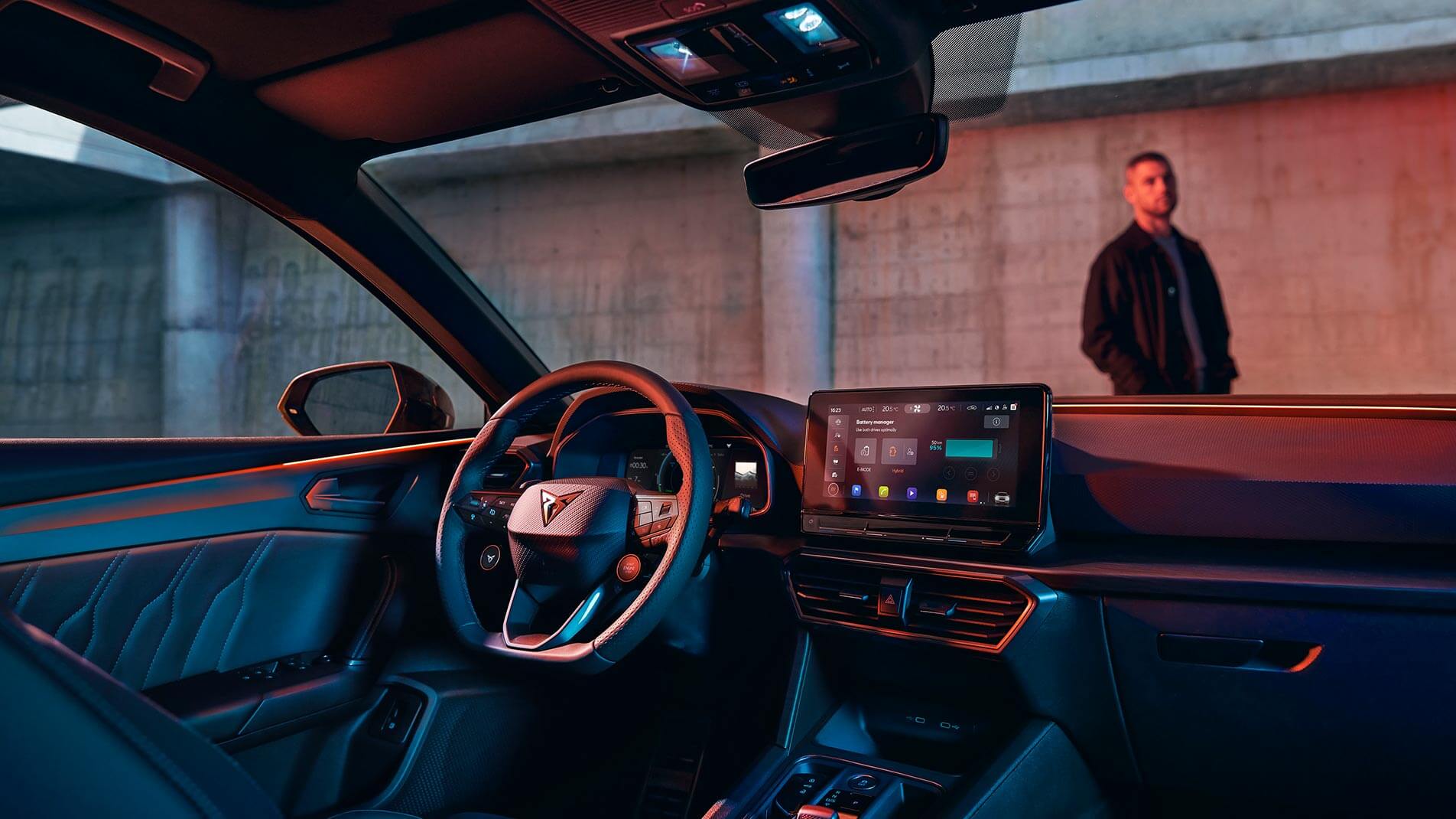 Leon'un iç mekanı da en az dışı kadar etkileyici. 3D baskı ve geri dönüştürülmüş vegan mikrofiber döşeme kullanılan koltuklar hem konforlu hem de şık bir görünüm sunuyor. 12.9 inçlik multimedya ekranı, modern ve kullanışlı bir arayüze sahip. Arka aydınlatmalı dokunmatik klima ve ses kontrolleri ise kabineye sofistike bir hava katıyor. Cupra'nın müzik tutkunları için Sennheiser tarafından geliştirilen 12 hoparlörlü, 425 W ses sistemi ise sürüş keyfini bir üst seviyeye taşıyor.
