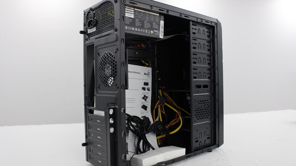 Disklerimizi de bitirdiğimize göre artık kasa modeline geçiş yapabiliriz. Sistemimizde kasa olarak Aerocool markasının geliştirmiş olduğu V2X modelini kullandık. Buradaki en büyük avantajımız ise kasanın içerisinde dahili olarak 500W PSU'nun gelmesi.