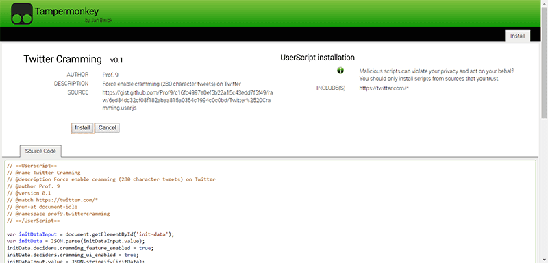 Şimdi Twitter'ı ziyaret edip Tampermonkey çalışır durumdaysa 280 karakter limiti daha size gelmeden kullanabilirsiniz.