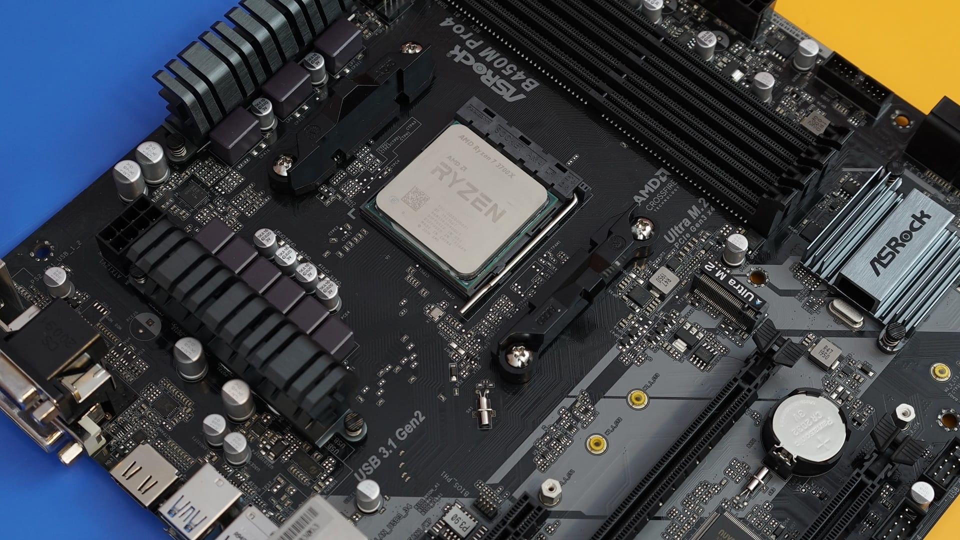 Anakart tarafında ASRock B450M Pro4 modelini kullanıyoruz. İçerisinde AMD B450 çipsetini kullanan anakart, Ryzen ailesinin 2000, 3000 ve 5000 serisi işlemcileri ile tam uyumlu olarak çalışabiliyor. Üzerinde dört adet DDR4 bellek yuvası barındıran anakart, toplamda 128GB RAM belleğe destek sunuyor. Aynı zamanda belleklerin en yüksek çalışma frekansı 3200 MHz.