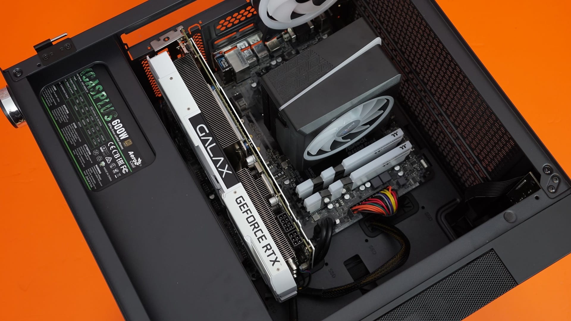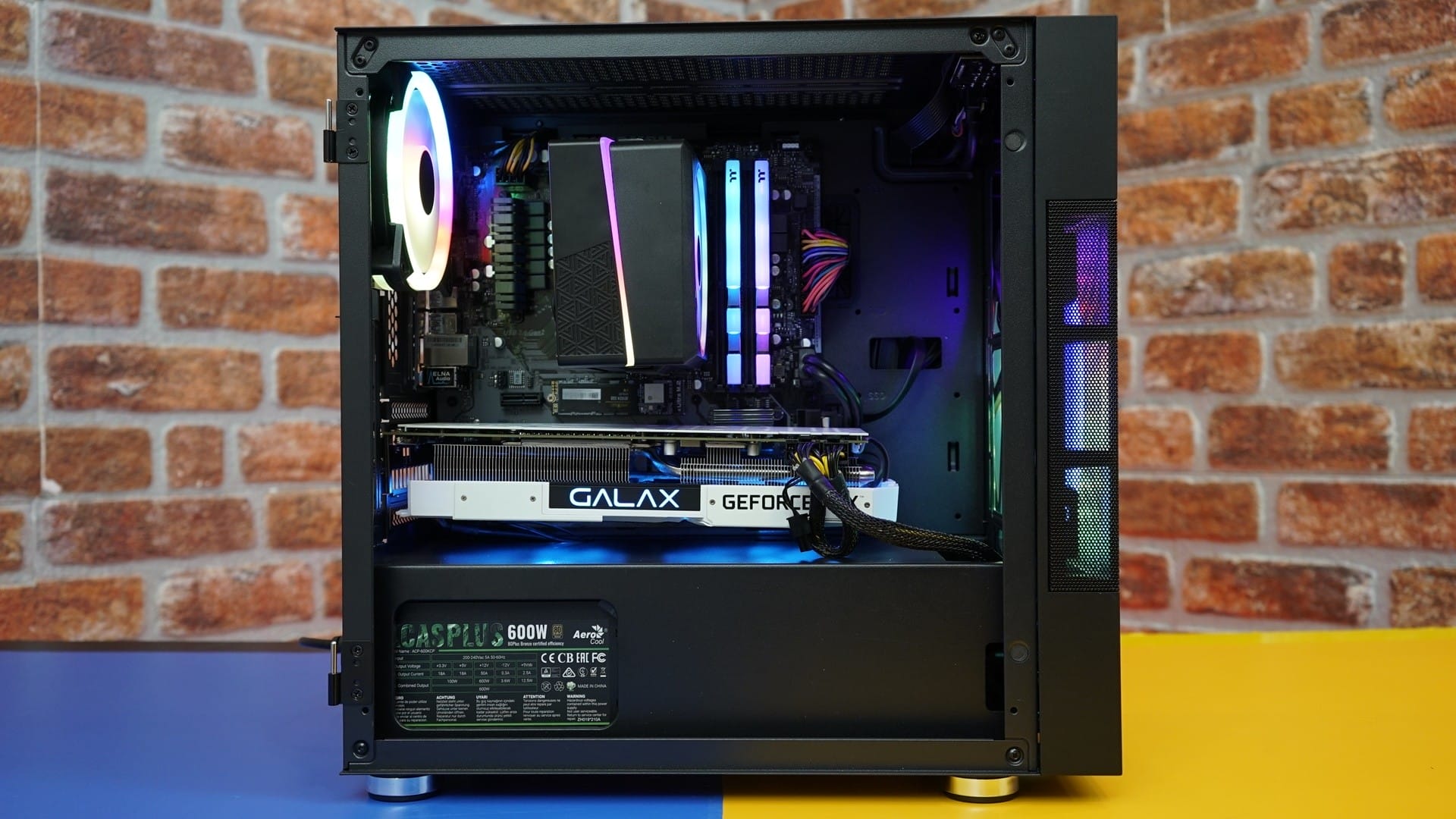 Güç kaynağında ise yine Aerocool marka KCAS PLUS 600W PSU kullanıyoruz. Güç kaynağı 600W güce sahip ve 80+ güç verimliliği sunabiliyor. Sertifika tarafında ise Bronze sertifikası bulunan PSU, sistem için gerekli tüm gücü güvenli şekilde üretebiliyor.