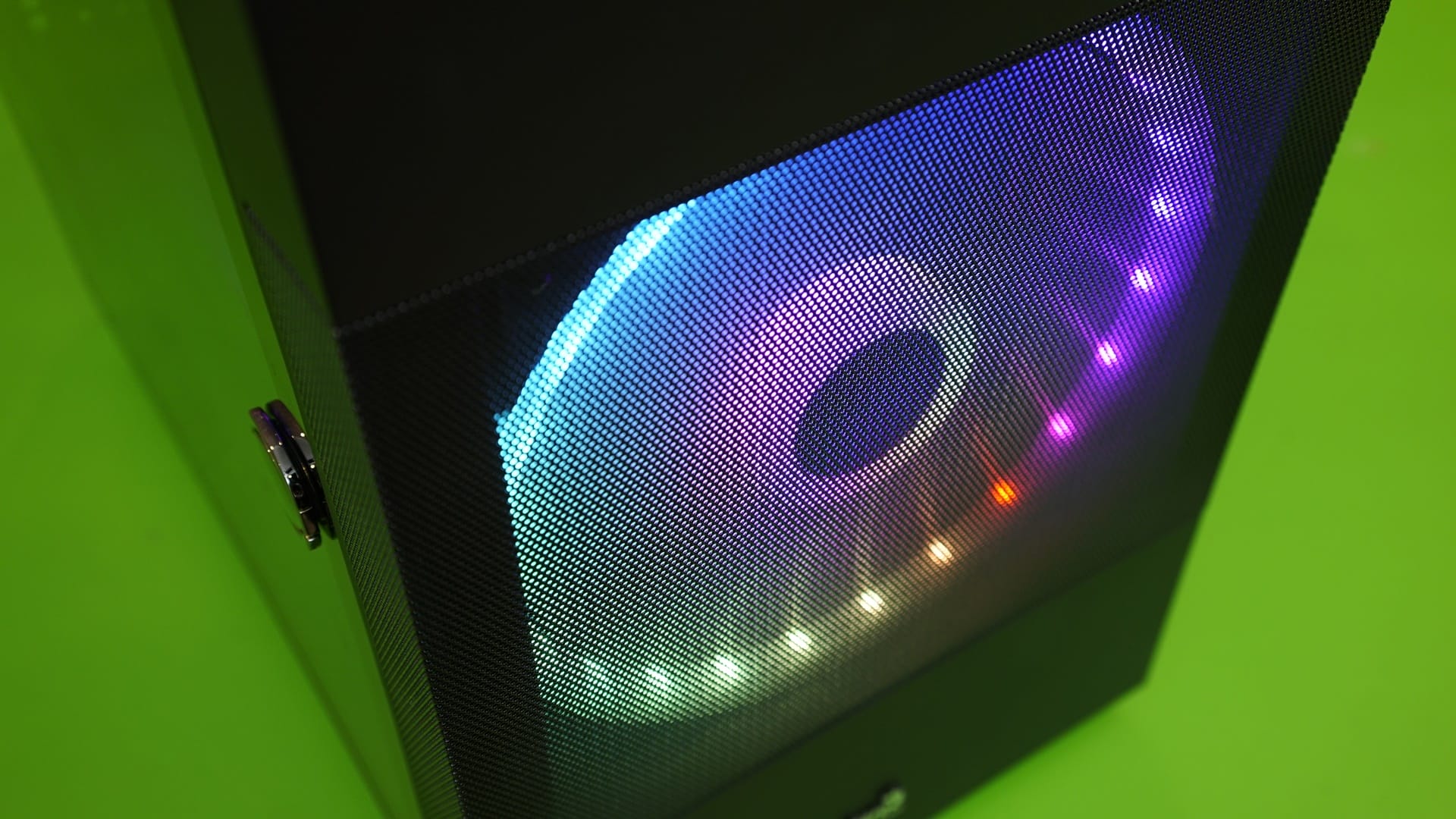 Öte yandan kasanın ön panelinde yarım mesh bir yapı görüyoruz. Bu alanda Aerocool, paneli tam ortalayan yere 20 cm boyutunda tek bir RGB fan konumlandırmış. Bu fan, tüm kasa için gerekli havayı tek başına içeri alıyor. Fana karşılık gelen kısım, hava akışının daha etkili sağlanması için ızgaralı bırakılırken alt ve üst bölgeler düz şekilde kapatılmış.