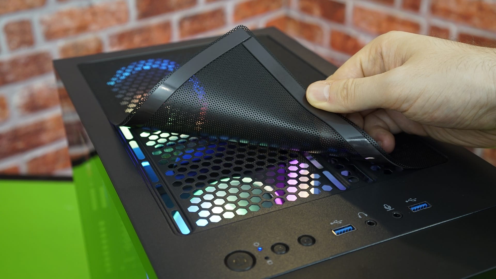 Aerocool, kasa içerisinde üst bölüme konumlandırılmak üzere fan alanı bırakmış. Bu alana yerleştireceğiniz fanlar, zamanla tozlanma yaptığı için üst bölümde mıknatıslı tozluk kullanılmış. Fanların RGB olması halinde göze hoş gelen bir görüntü oluşturacağını da hesaba katarsak, temizlik tarafındaki rahatlığı ile de son derece kullanışlı bir alan hazırlanmış diyebiliriz.