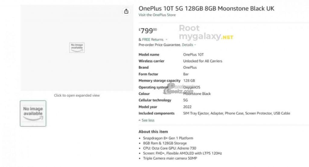 Hong Kong merkezli akıllı telefon üreticisi OnePlus, yakın zaman içerisinde OnePlus 10T akıllı telefon modelini tanıtacak ve bugün Amazon İngiltere, site içerisinde akıllı telefonu listelemeye başladı. Amazon'a göre akıllı telefon 8GB RAM ve 128GB dahili depolama alanı ile birlikte gelirken 799 Sterlin fiyat etiketiyle satışa sunulacak.