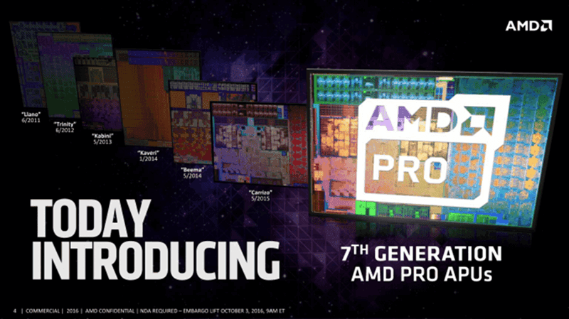 HP ve Lenovo ile firmaları AMD ile anlaşarak işlemcilerini 7.nesil AMD PRO APU ile güncelledi. Yeni serilerde ticari sınıf, performans ve üretkenlik ön plana çıktığı gibi, Device Guard, Windows Hello, Bitlocker ve Biometric Security gibi özellikler de yanında getiriyor.