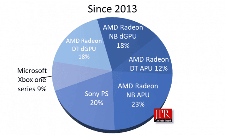 Yakın bir zamanda, veri istatistikleri şirketi Jon Peddie Research, Global PC Oyun Donanımı Satış Raporu'nu yayınlayarak AMD grafiklerinde bazı ilginç veriler elde etti. Rapora göre AMD'nin ekran kartı sevkiyatı 2013'ten bu yana yani yedi yılda toplam 553 milyon ekran kartı dağıttı!