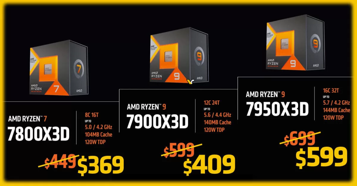 Ryzen 9 7950X3D modelinin fiyatı 100$ dolar aşağıya indirildi.