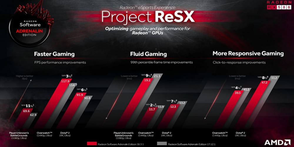Son dönemde ürettiği grafik işlemciler ile iyi bir ivme yakalayan AMD, bu ivmeyi yazılım desteği ile devam ettirmeye çalışıyor. Radeon Software Crimson Edition 17.7.2 sürümü ile oyunların girişlerindeki gecikmeleri daha çok ciddiye alan AMD, sunduğu bu güncelleme ile kare hızını arttırmadan oyunların daha hızlı tepki vermesini sağlamıştı. Özellikle Tom Clancy's The Division'da ulaşılan %31'lik performans artışı oyunun Radeon donanımında çok daha düzgün çalışmasını sağlamıştı.