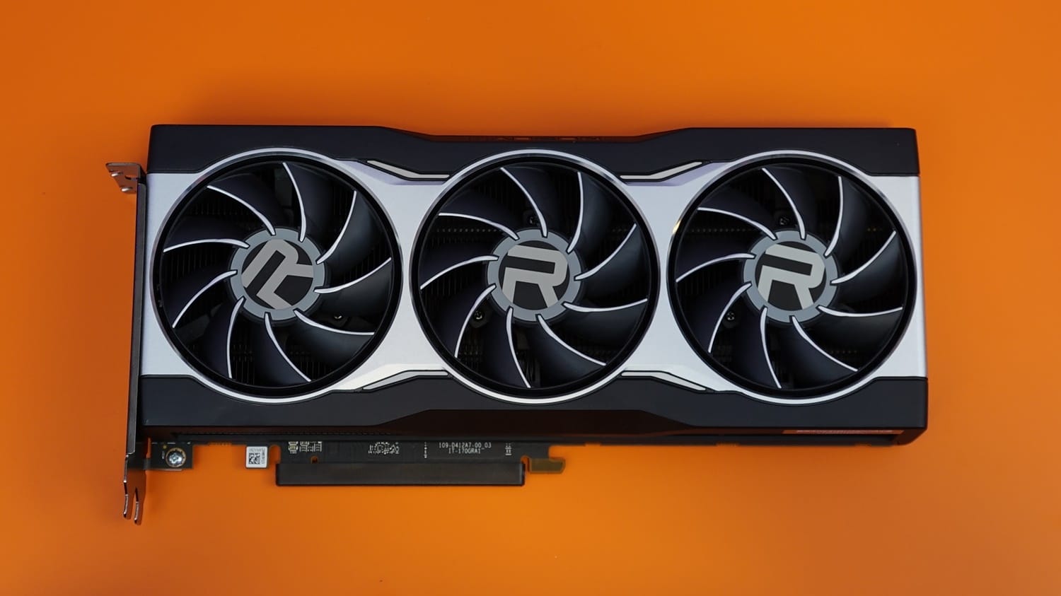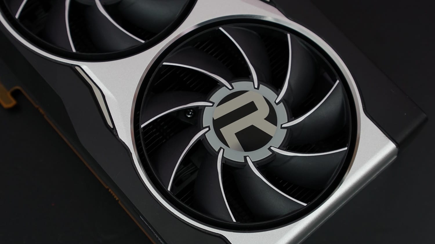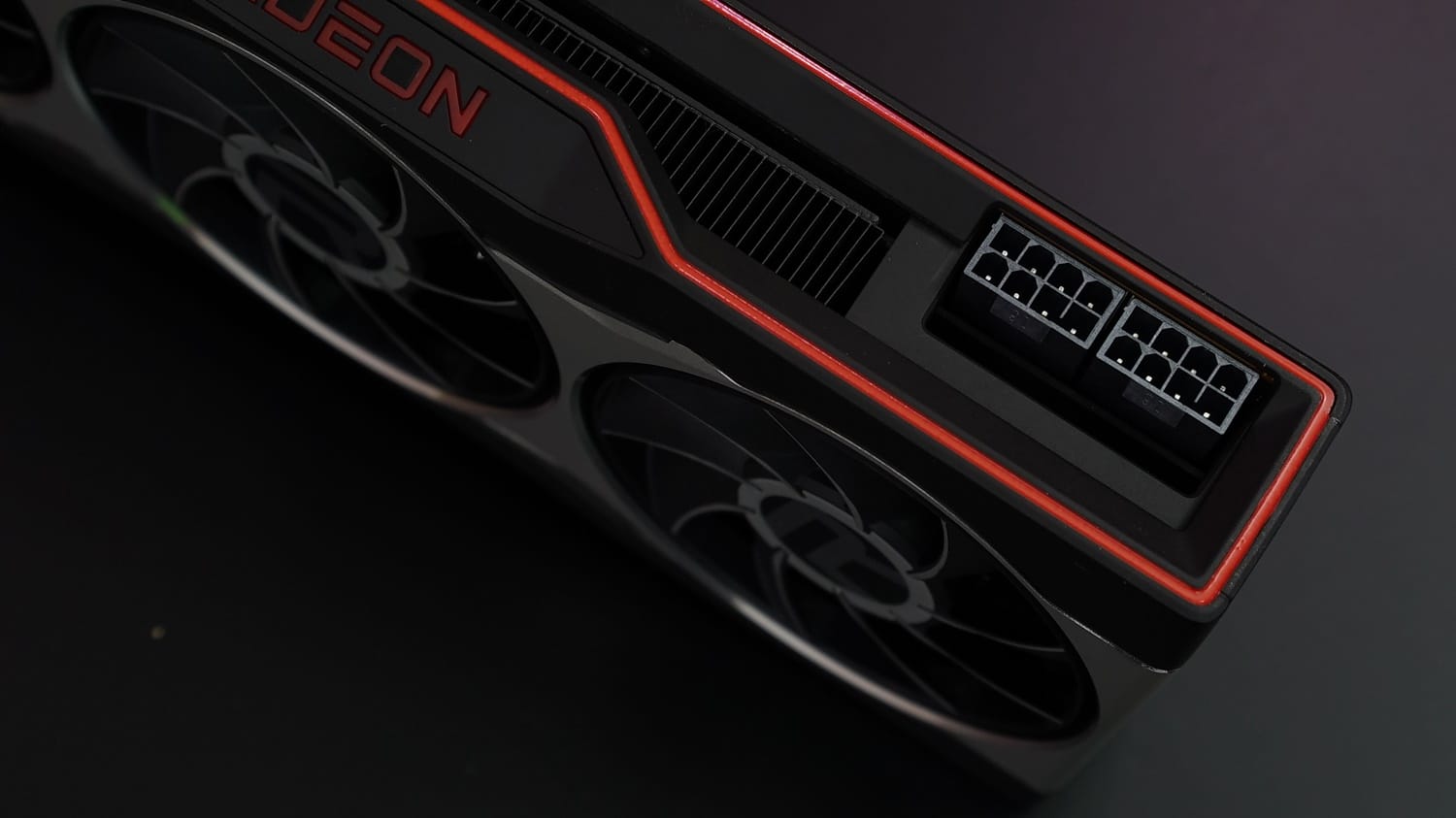Kartın üst bölümünde daha dinamik bir tasarım gözlemliyoruz zira bu alanda göze kırmızı renk detayı çarpıyor. Orta kısımda Radeon logosu ve logonun arka kısmında ise soğutma blokunun ızgaralı göze çarpıyor. İki alanı içine katan sınır çizgileri de aynı şekide kırmızı renkler detaylandırılmış. Spor arabaların arka stoplarını anımsatan bu tasarım, kart üzerinde son derece şık durmuş. Radeon ibaresinin kırmızı aydınlatmalara sahip olduğunu da belirtelim.