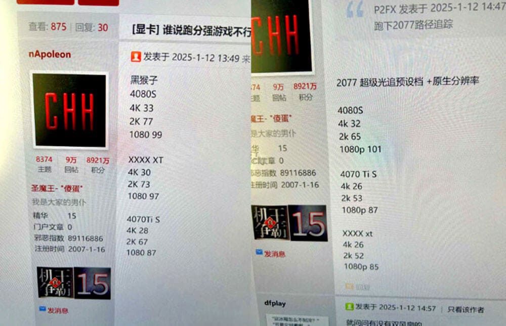 Bu kartlar sonuçta şuanda Dünya'nın pek çok ülkesinde farklı testerlar tarafından test ediliyor. İncelemeyi yapan nApoleon isimli kullanıcı CyberPunk 2077 ve Black Myth: Wukong oyunlarını seçmiş.