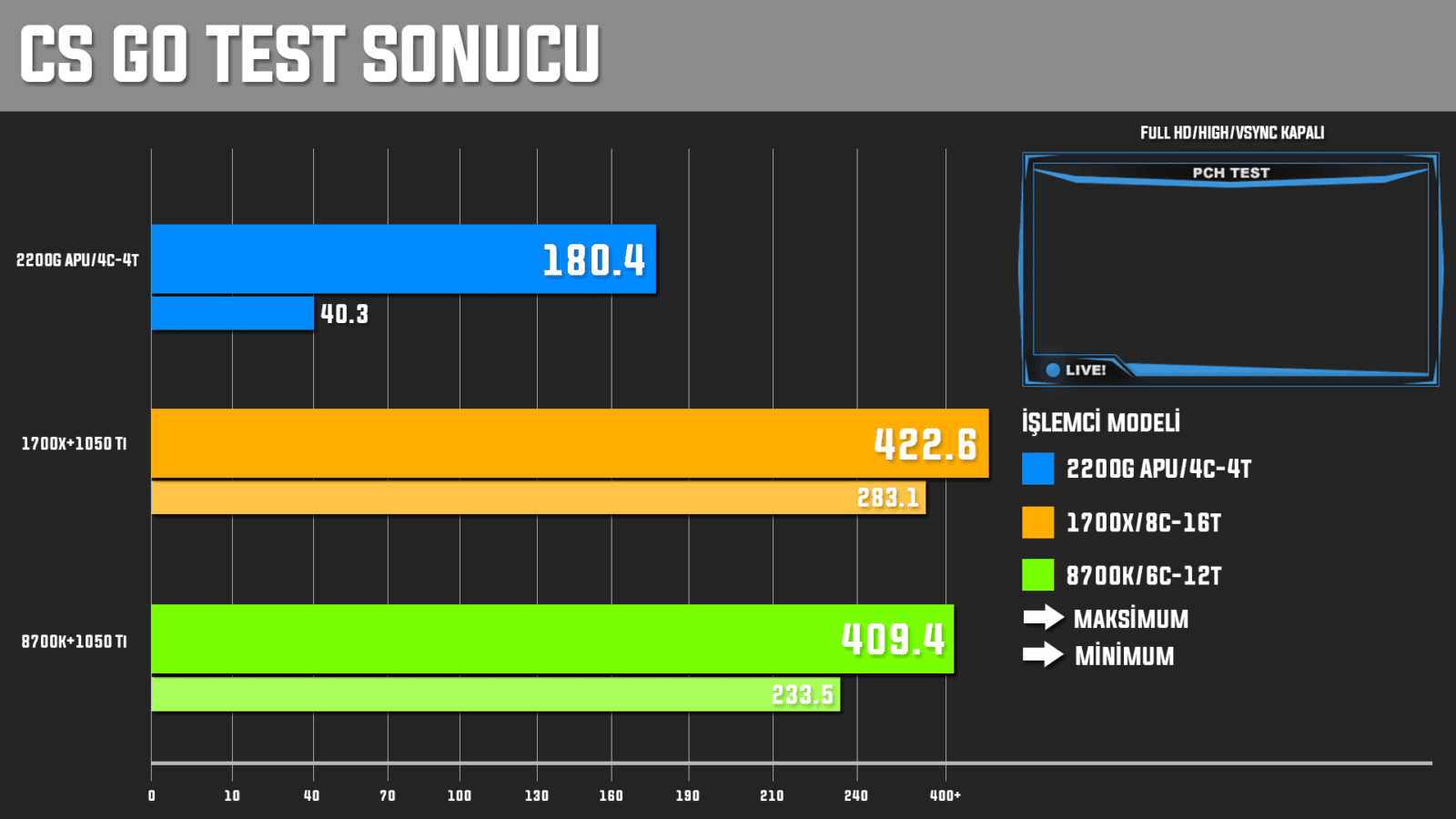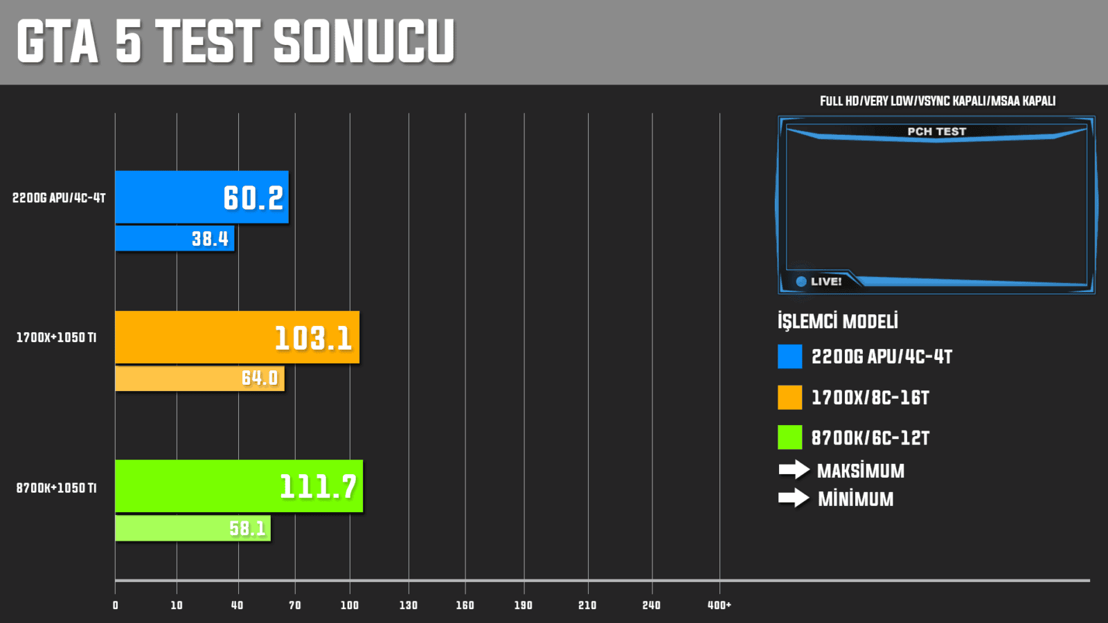 Yaptığımız incelemeler ve test sonuçlarından da görüleceği üzere AMD gerçekten bu APU'lara çok iyi şekilde hazırlanmış. Özellikle GTA V'de full HD ayarda elde edilen FPS skorları gerçekten şaşırtıcı. LoL ve CS: Go için zaten söze gerek yok ancak PUBG testlerinde yaşadığımız dropların oyunun işlemciyle olan uyumsuzluğu ile oluştuğunu söyleyebiliriz. Yakın zamanda gelecek güncellemeler ile PUBG için de iyi sonuçlar alınacaktır.