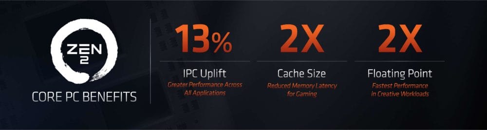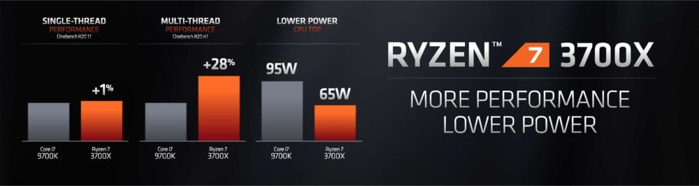 AMD ayrıca, "8 çekirdekli yeni performans lideri" olarak nitelendirdiği Ryzen 7 3800X ile x800X serisini yeniden piyasaya sürdü. Ryzen 7 3800X ve Ryzen 7 3700X'in her ikisi de 8 çekirdekli tasarıma sahip. Fakat farklı TDP değerleri ve saat hızları var. İkincisi ise sadece 65W TDP değerine sahip. 7 nanometre mimarisi ile mümkün olan 4.4 GHz turbo frekansı ile inanılmaz bir başarı.