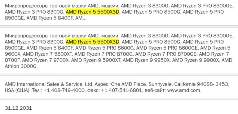 5500X3D için herhangi bir duyuruda bulunmayan AMD, EEC’ye (Avrasya Ekonomik Komisyonu) sunulan başvuru raporunda yeni işlemcisini sızdırmış oldu.