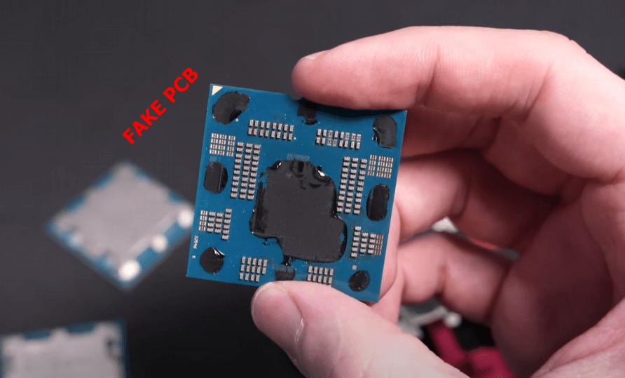sahte 7800x3D PCB'sinde sadece silikon çekilerek yanıltıcı bir görüntü verilmiş.