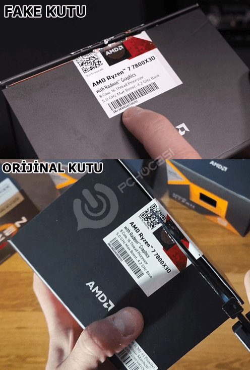 Sahte 7800x3D işlemcisinin kutusu orijinali ile neredeyse birebir aynı durumda. Siz de ürünü aldıktan sonra kutuyu açtığınızda şüphelenmediğiniz için, burada durumu anlayamıyorsunuz.