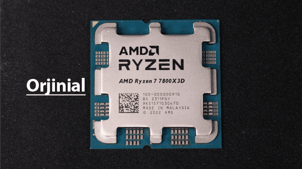 Sahte 7800x3D işlemcisinin kutusu orijinali ile neredeyse birebir aynı durumda. Siz de ürünü aldıktan sonra kutuyu açtığınızda şüphelenmediğiniz için, burada durumu anlayamıyorsunuz.