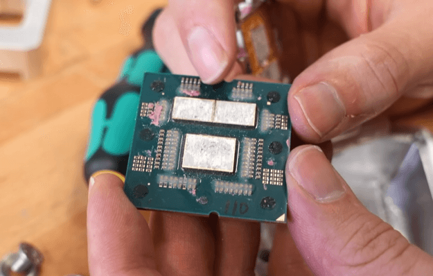 sahte 7800x3D PCB'sinde sadece silikon çekilerek yanıltıcı bir görüntü verilmiş.