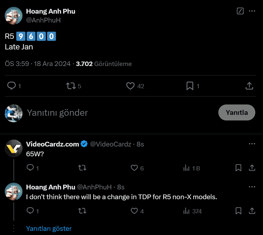 Bugün X platformu üzerinde @AnhPhuH isimli popüler sızdırmalar yapan arkadaşımız AMD Ryzen 9600 için yine bir kaç bilgi