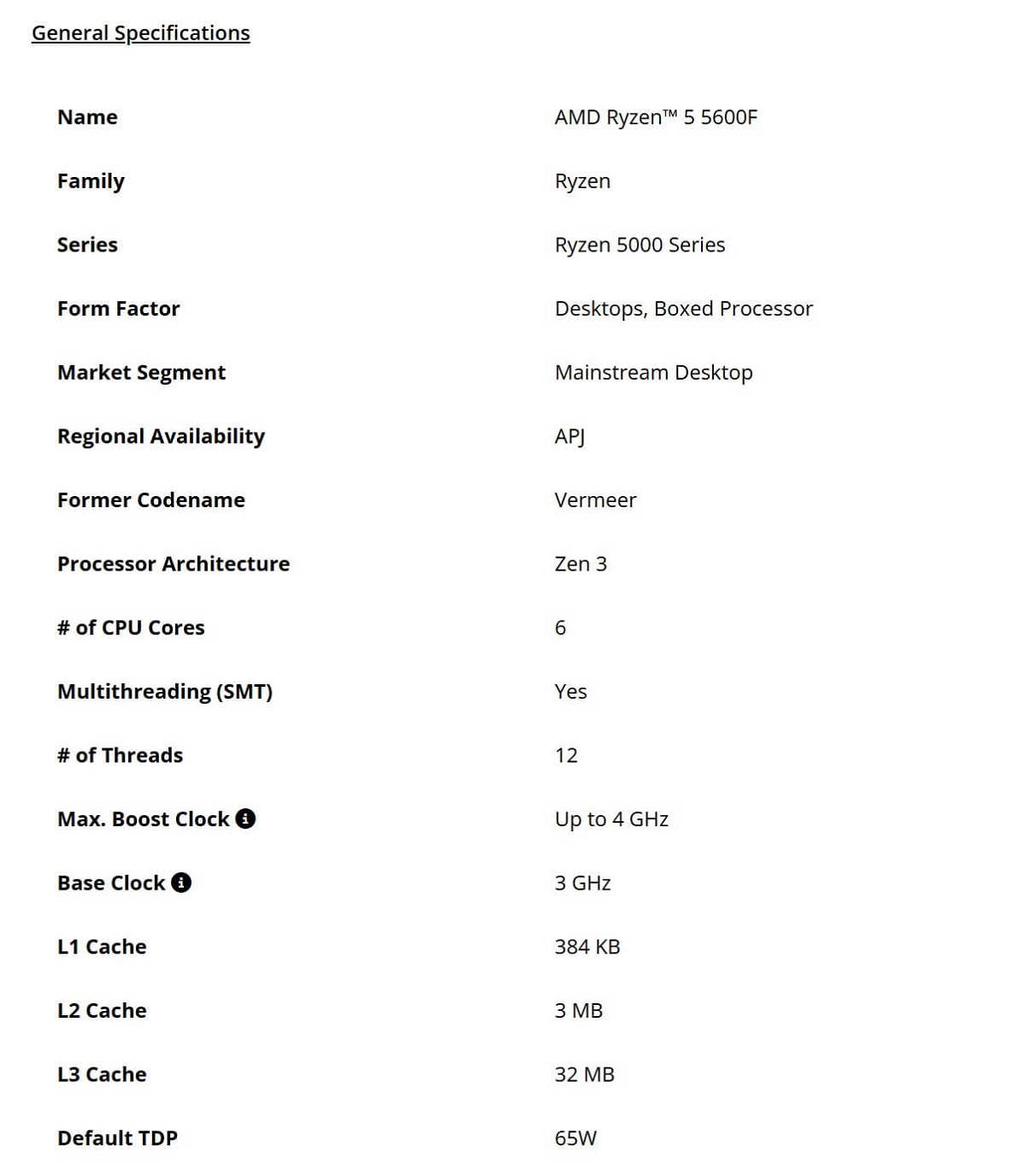 Hız kesmeden AM4'ün en güncel işlemcisinin yani 5600F'in özelliklerine baktığımızda