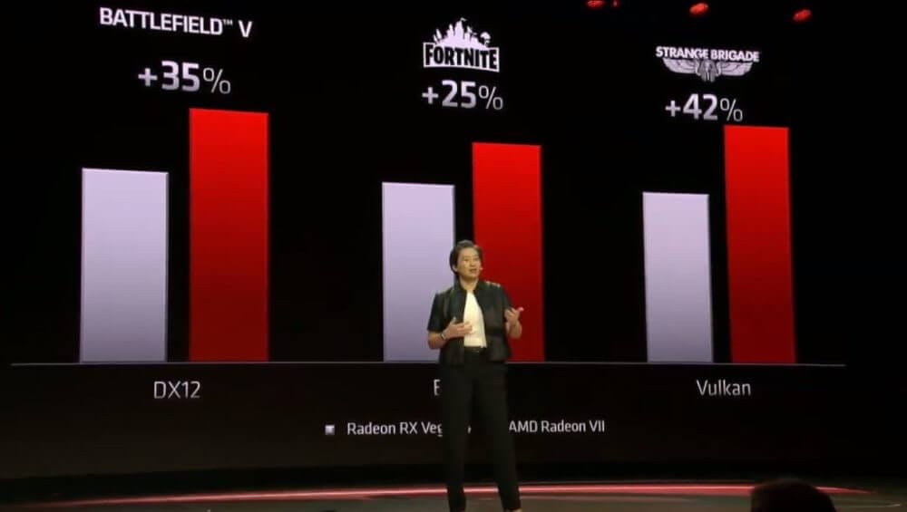 AMD Vega VII ekran kartı tanıtımında yayınlanan slaytlara göz atıldığında, çeşitli seçilen oyunlarda GeForce RTX 2080 ekran kartından daha hızlı olduğu görülüyor. Bu şuan için ön gösterim testlerinden ibaret. Fakat kart ofisimize ulaştığında derinlemesine testlerini "BİZZAT Kendim" yaparak deneyimleri paylaşacağız.