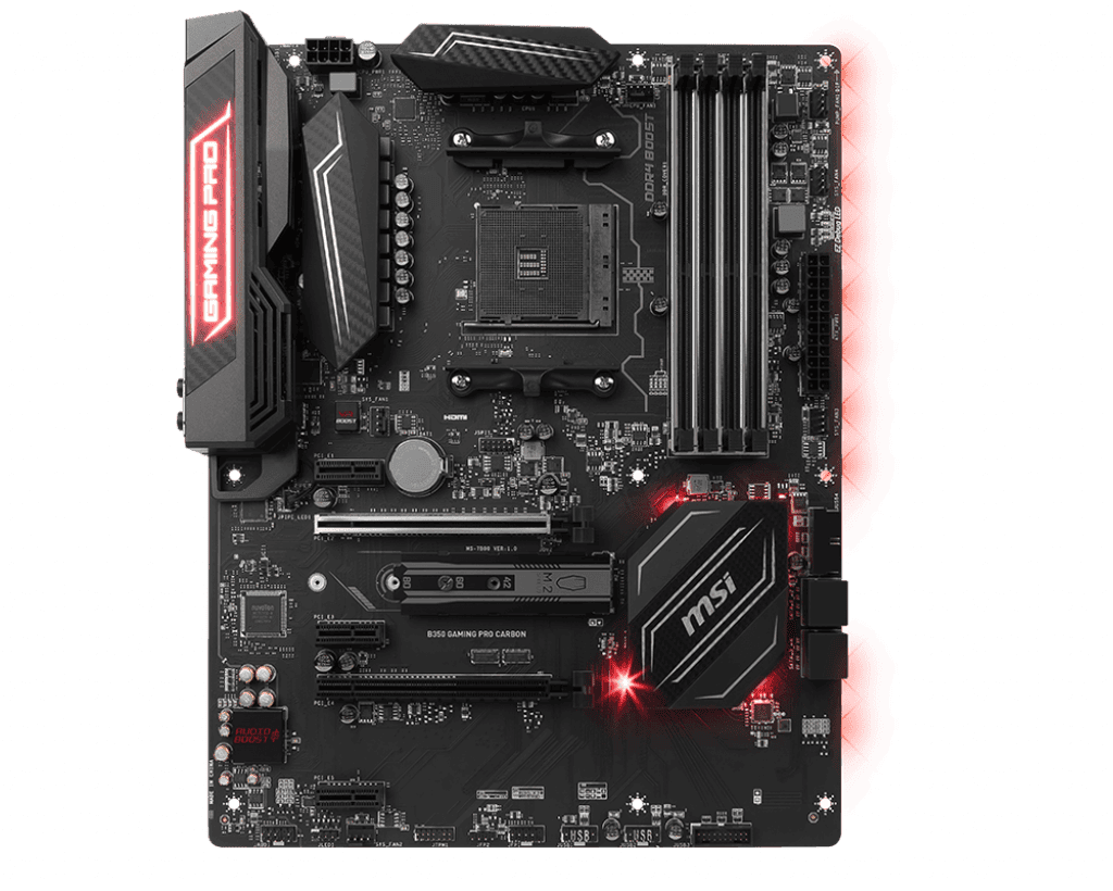 MSI B350 Gaming Pro Carbon model bir anakart görüyorsunuz. Yazı boyunca aktaracağımız bilgileri bu model üzerindeki bölümleri göstererek sizlere sunacağız. Aklınıza her anakart aynı değildir ki gibi bir düşünce gelmesin çünkü her anakart tasarımsal detaylar haricinde