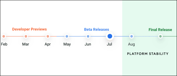 Tabloya baktığımız zaman şu an son Beta Sürümleri dönemindeyiz ve Ağustos başı itibariyle son bir Beta daha yayınlanacak ve büyük ihtimalle Eylül ayı itibariyle ana sürüm yayınlanmaya başlayacak gibi görünüyor. Muhtemelen zaman çizelgesinde işaretlenen “Son Yayın”ın altında bir ay olmadığını fark etmişsinizdir. İyi haber şu ki, bu son sürümün ne zaman olacağını tahmin etmek çok zor değil. Sadece geçmiş Android sürümlerine bakmamız gerekiyor. Android 11 işletim sistemin yalnızca üç beta sürümü aldı, sonuncusu Ağustos 2020'deydi. Kararlı sürüm hemen sonraki ay gerçekleşti.