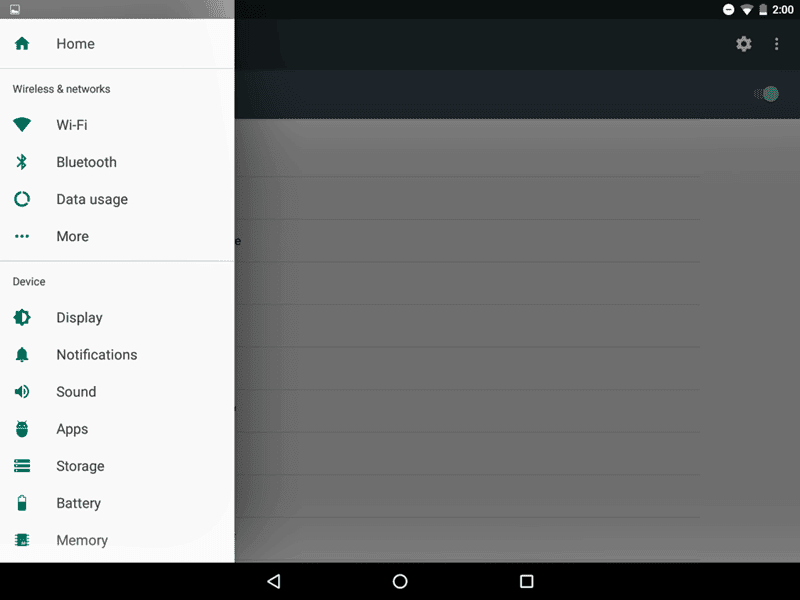 Sıkça kullandığımız ayarlar menüsü yenilenerek farklı bir görünüm elde edilmiş. Bu menüde artık "geri butonu" bulunmadığı gibi, ismine "hamburger menü" gibi saçma bir isim takılmış. Bu menüde kısa uzantıların bulunduğu ve uygulamalara çok daha hızlı erişebileceğimiz bir platform gibi düşünebilirsiniz.