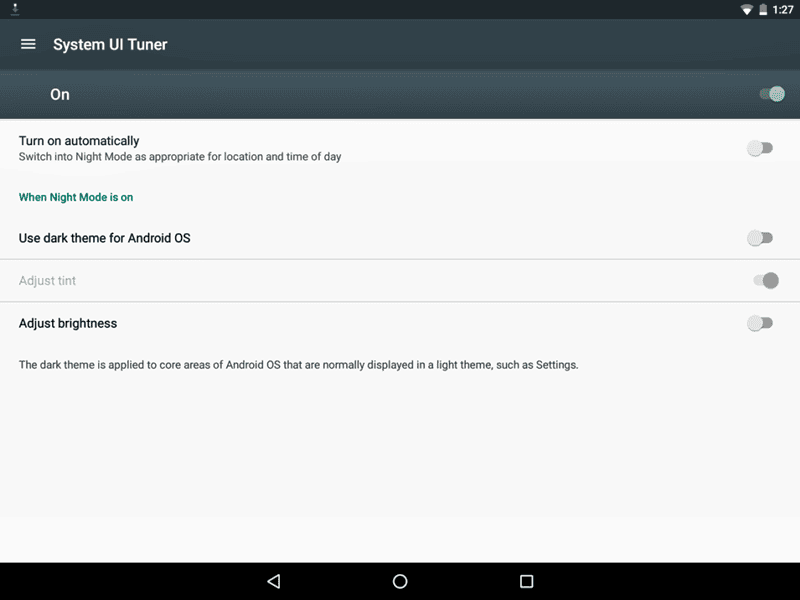 İlk olarak Android M geliştirici ön izleme sürümünde gördüğümüz ardından Marshmallow da kaybolan bir diğer özellik gece moduydu. Bu mod Android N ile birlikte tekrar dönerek bizleri umutlandırdı. Koyu tonlarda duvar kağıtları kullanan kişilerin hoşuna gitmeyen beyaz ayarlar menüsü gece modu ile birlikte son buluyor.