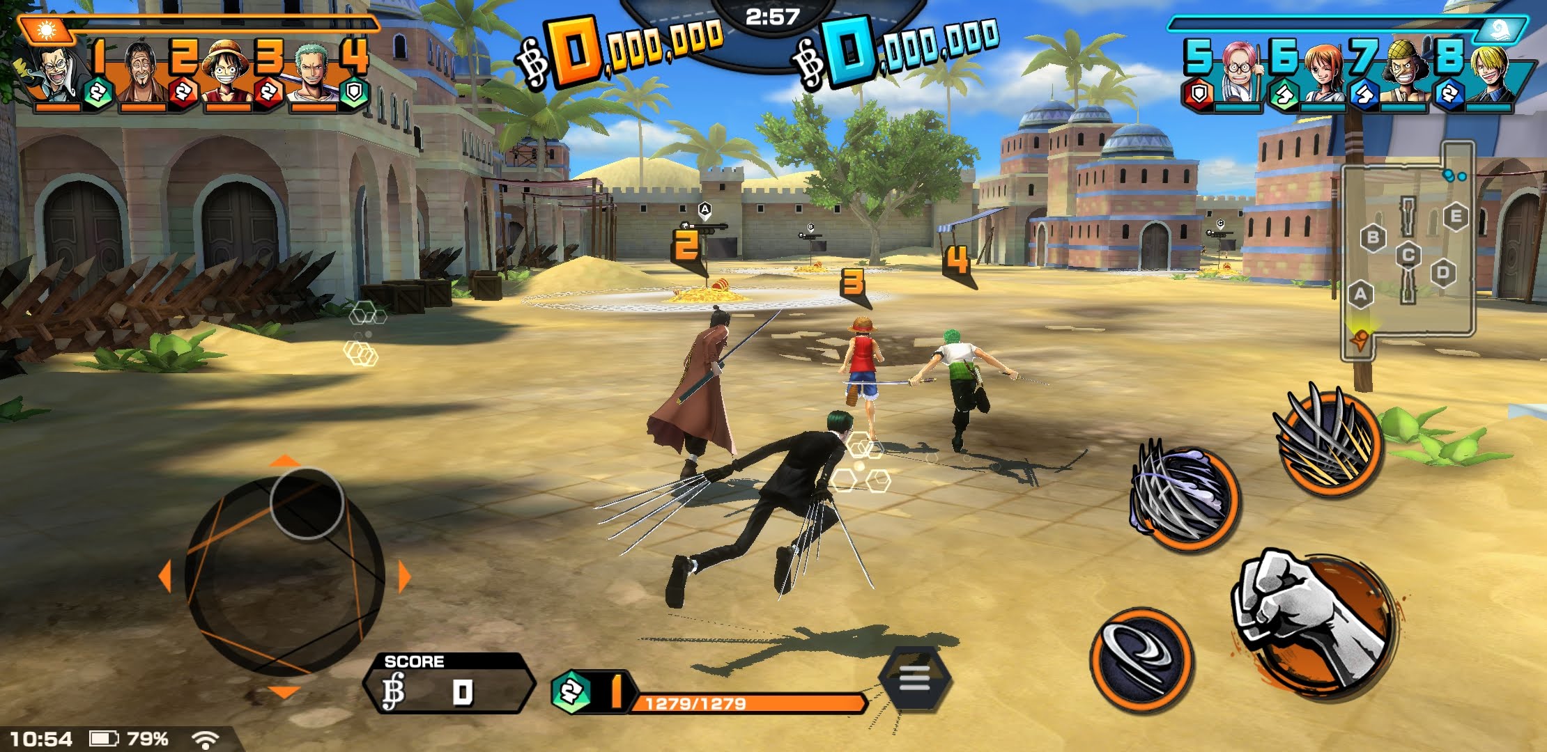 Treasure Cruise’tan farklı olarak bu oyun canlı savaş üzerine kurulu. 4'e 4 PvP sisteminde, hazine kapışmaları yapıyorsunz. Luffy, Zoro, Katakuri, Shanks gibi karakterlerle takımlar kuruyor, rakiplerle arenada kıyasıya savaşıyorsunuz. Karakterlerin sınıfları (saldırı, savunma, destek) var ve takım dengesi oyunda oldukça önemli.