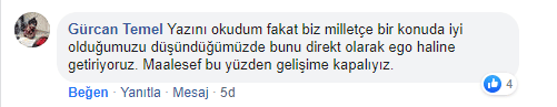 Sosyal medyada bu haberi paylaştığımda Gürcan Temel isimli dostumuz güzel bir yorumda bulundu. Bunu da atladığım için kendime kızarak, onun yorumunu eklemek istedim. Çok doğru..