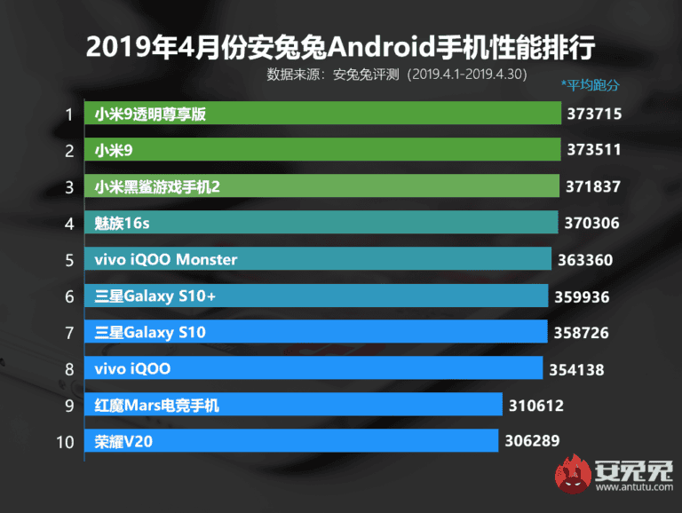 AnTuTu'nun paylaştığı listeye bakıldığında Xiaomi'nin Mi 9 Transparent Edition versiyonunun 373715 puan alarak birinci sıraya oturduğu görülüyor. Listenin ikinci sırasına bakıldığında ise Xiaomi'nin amiral gemisinin standart versiyonun bulunduğu gözüküyor ve bu modelinde 373511 puan aldığı göze çarpıyor.