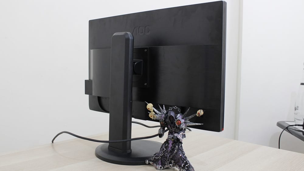 Monitörün arka kısmında ise yine biz kablo savar kişiler için geliştirilmiş bir kanca görüyoruz. Bu kanca ile monitöre giden kabloları bir arada tutuyor ve masa üzerinde daha ferah bir çalışma alanı oluşturabiliyoruz. Monitörümüzün hemen sağ kenarında ise bizleri 2 adet USB 2.0 yuvası karşılıyor. Yine sağ arka panelde güç girişi, 2 adet USB 2.0 yuvası ve ekran bağlantı noktası bulunuyor.