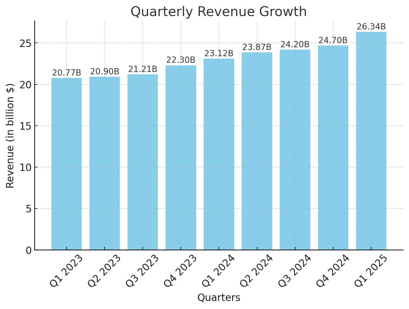 Apple Servisleri tarafındaysa işler böyle yürümüyor. 2023 yılının üçüncü çeyreğinde yaklaşık 21 milyar dolar gelirle başlayan bölüm, henüz sonlanmayan 2025 yılının ilk çeyreğinde ise yaklaşık 26.5 milyar dolarlık gelir seviyesine ulaştı.