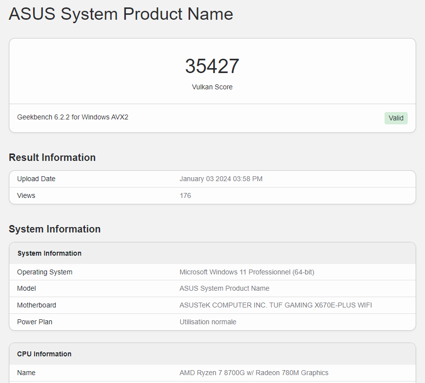 GeekBench OpenCL ve Vulkan API'lerin kullanıldığı bir kaç test sızıntısı internette mevcut.