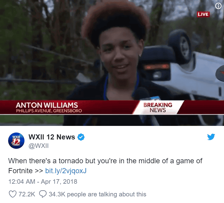 Geçtiğimiz aylarda doğal afetlerden olan kasırga ABD'de bir eyalette gerçekleştiği anda, bir çocuk ailesi ile evde kalırken, kasırgayı gördükleri halde ailesinin kaçmaya çalıştığı ve Williams adındaki çocuğun odasına geri dönerek oyunu oynamaya devam etmiş olması kayıtlara geçti.
