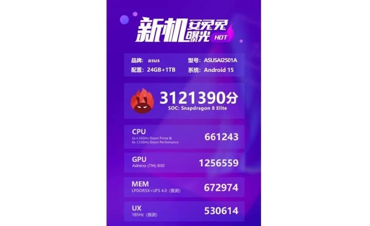 3.121.390 puana ulaşarak zirvede yerini alıyor. ASUS ROG Phone 9'un listede sıralanan CPU ve GPU performanslarına gelecek olursak model,