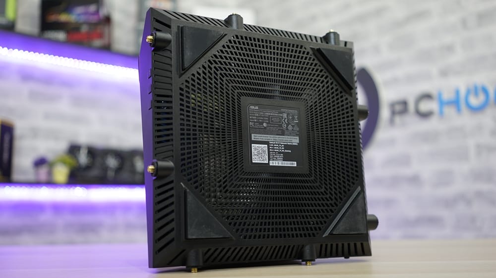 ASUS ROG Rapture GT-AX11000 Router, tabanında herhangi bir giriş çıkış barındırmıyor. Ancak ince ve sık hazırlanmış alt bölüm, cihazın daha serin kalmasını sağlıyor. Öte yandan modemin her bir kenarında iki adet anten bağlantı yuvası bulunmakta.