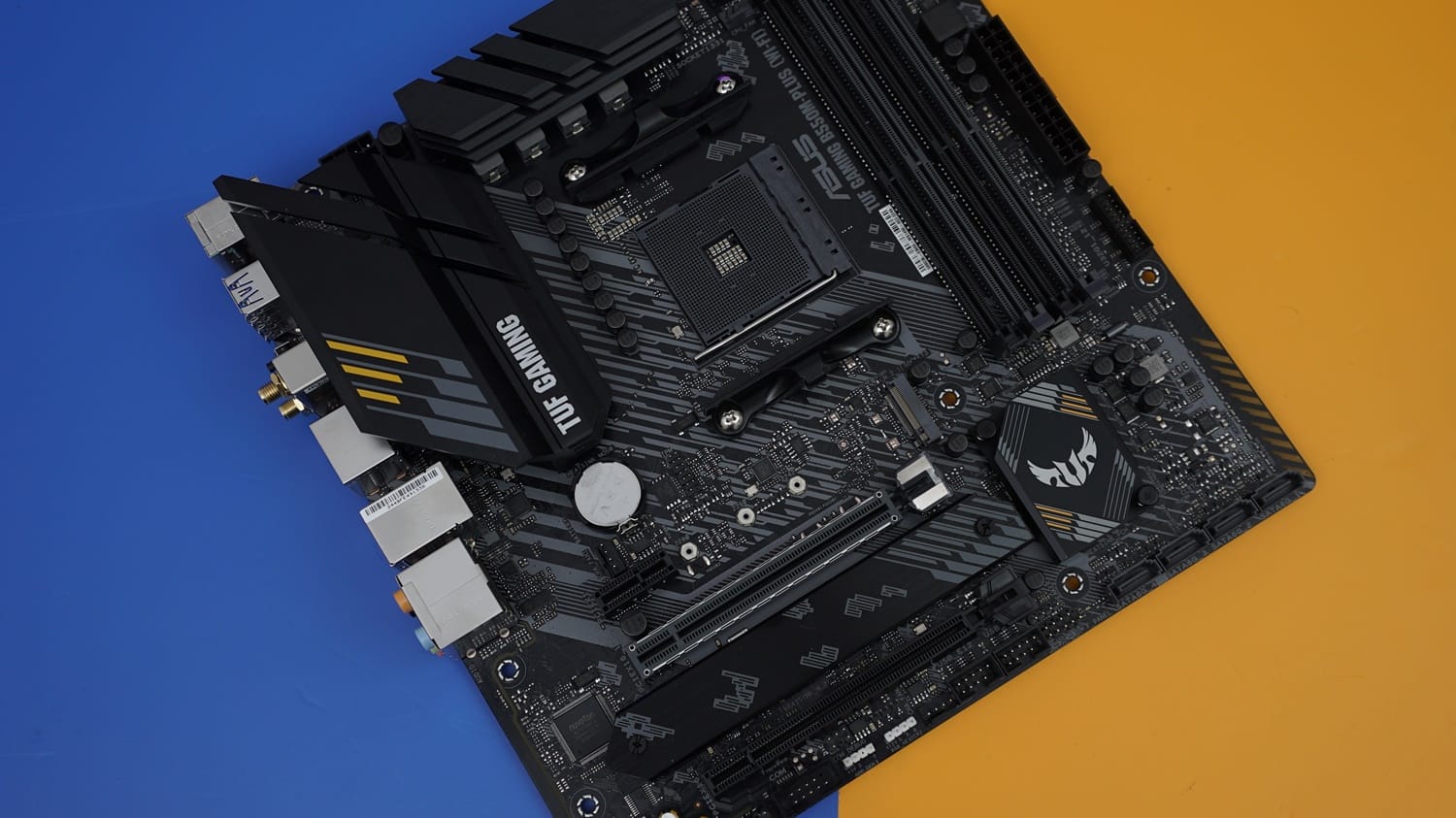 Her iki modelinde hakim renginin siyah olduğunu görüyoruz. PCB ve genel tasarım dilini siyah yüzey ile sabitleyen ASUS, TUF modelinde tema rengi gri ve turuncu renklere yoğun şekilde yer vermiş. Çaprazlama gri renkli şeritler ile anakarta dinamik bir hava takan ASUS, RGB aydınlatmaya sadece sağ alt köşede yer vermiş.