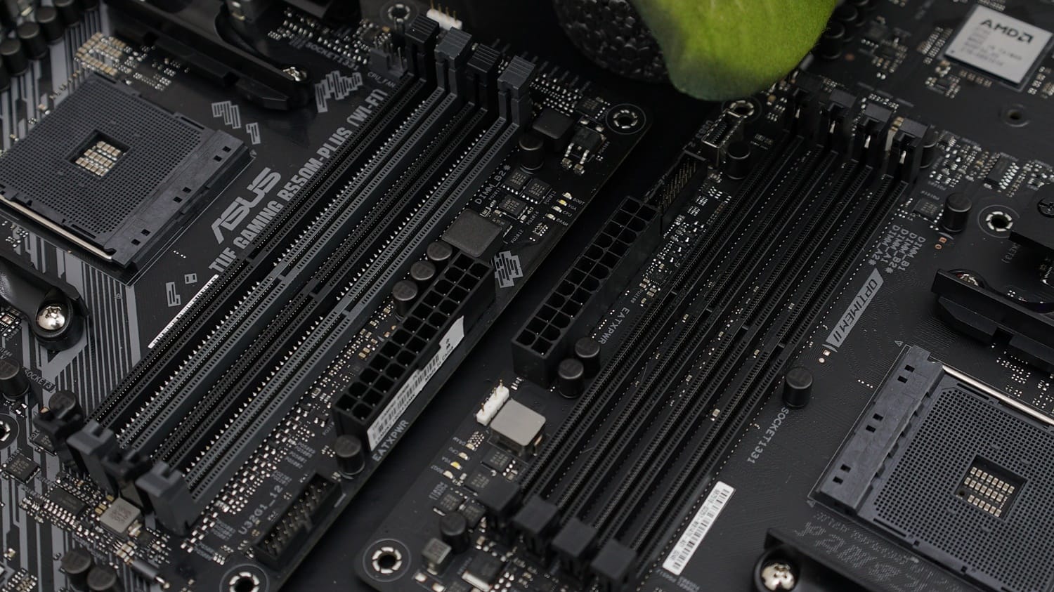 Her iki modelin genel yapısı dayanıklılık üzerine kurulmuş. Bu noktada her iki anakartta da 6 katmanlı bir PCB yapısı ve SafeSlot adı ile güçlendirilmiş slotları görüyoruz. ROG STRIX modelinde kullanılan SafeSlot'lar iki ekran kartı yuvasında da mevcut. TUF modelinde ise tek bir slotta bu desteği görüyoruz. RAM slotlarına baktığımızda ise iki modelde de bir güçlendirme sunulmamış.