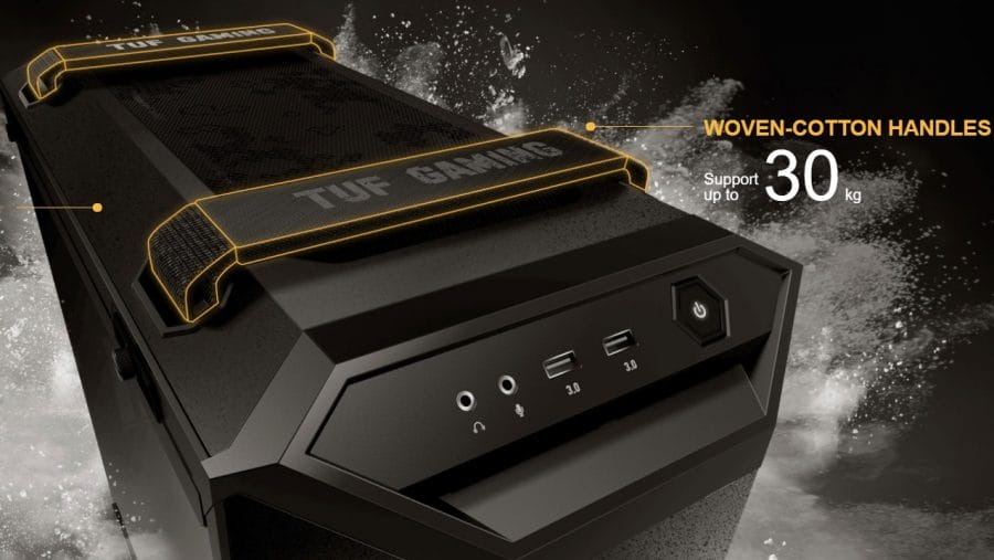 Kasa biraz büyük bir kasa. Önde yer alan TUF logosuyla dikkat çeken kasada, çelik malzeme kullanılmış. Bunun yanında çizilmemesi için malzemesinin de özel bir kaplama ile kaplandığını görüyoruz. Kasanın ağır olması nedeniyle üst kısımda taşımayı kolaylaştıracak bir aparat kullanılmış. Örme pamuklu dokuma kolçaklar iki adet olarak kullanılmış. Bir ön kısımda bir de arka kısımda yer verilmiş.