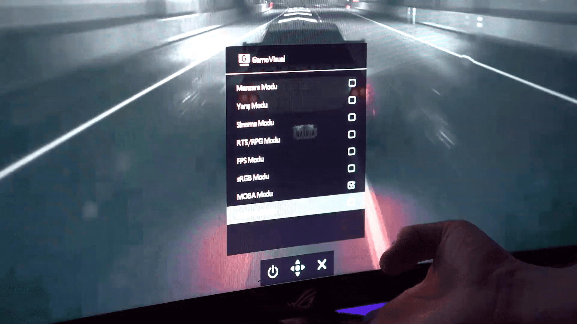 Bu noktada monitörün kendi içerisinde bulunan GameVisual görüntü modları mevcut. Bu modları, monitörün arayüzünden seçebileceğiniz görüntü filtreleri olarak açıklayabiliriz. Oynadığınız oyunun ya da izlediğiniz film, resmin türüne göre en iyi görüntü ayarlarını içeren bu modda; FPS, yarış, manzara, sinema, MOBA gibi birçok ön ayar mevcut. Bu ayarlardan biri seçerek, görüntünün içeriğe daha iyi optimize edilmesini sağlayabiliyorsunuz.