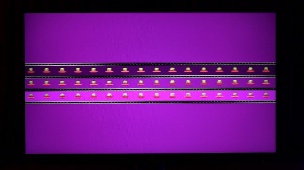 Monitörün siyahları ne kadar doğru bir şekilde yansıttığını gösteren önemli testlerden biri. Bu testle beraber ışık huzmeleri sorunu var mı yok mu görebiliyorsunuz. ASUS ROG Swift PG27AQN, testten başarıyla geçti diyebiliriz. Ekranın panel kalitesinin de gayet iyi olduğunu buradan anlayabiliyoruz.