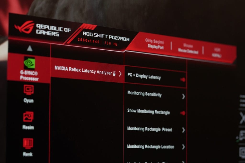 - Monitörün arkasında yer alan tuş üzerinden NVIDIA Reflex Latency Analyzer’ı aktif ediyorsunuz.