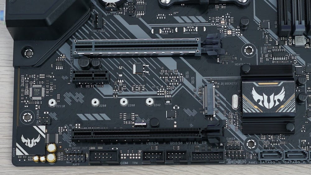 Bir önceki modelde PCB üzerinde gördüğümüz sarı kaplamalar yeni modelde siyah ve gri olarak güncellenmiş ve anakartın daha ağır görünmesini sağlamış. Öte yandan soğutma blokunda ve giriş çıkış kalkanı üzerinde de TUF logo ve isim ibaresini görmek mümkün. Harici olarak ise dikkat çeken farklı bir detay göremiyoruz.