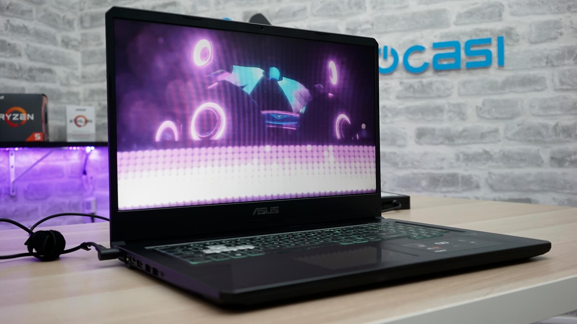 Ekrana değinecek olursak tasarım kısmında da belirttiğimiz gibi 15.6" boyutunda Full HD çözünürlük sunan ince çerçeveli bir ekran görüyoruz. Ekran panelinde IPS panel tercih eden ASUS, paneli %100 sRGB desteği ile güçlendirerek daha doğru renk sunabilen bir ekran oluşturmuş. Renklerin oldukça doğal ve canlı görünmesini sağlayan bu ekran, aynı zamanda yansımayı önleyen korumaya ve 144Hz ekran tazeleme oranına sahip. Ekranın tepki süresi ise 3MS.